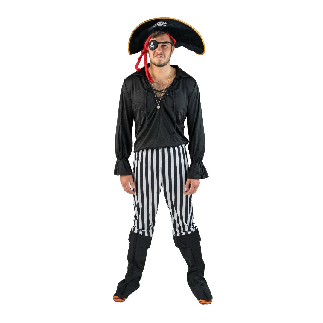Ahoy there! This pirate costume will ensure that you’ll arrr-ive in style to any occasion, whether it’s a party, Halloween or even a Hen do! It features striped trousers, a black shirt with a tie-up cord, skull & cross bones eye-patch and boot covers. So let’s get on with it and sail the seven seas!