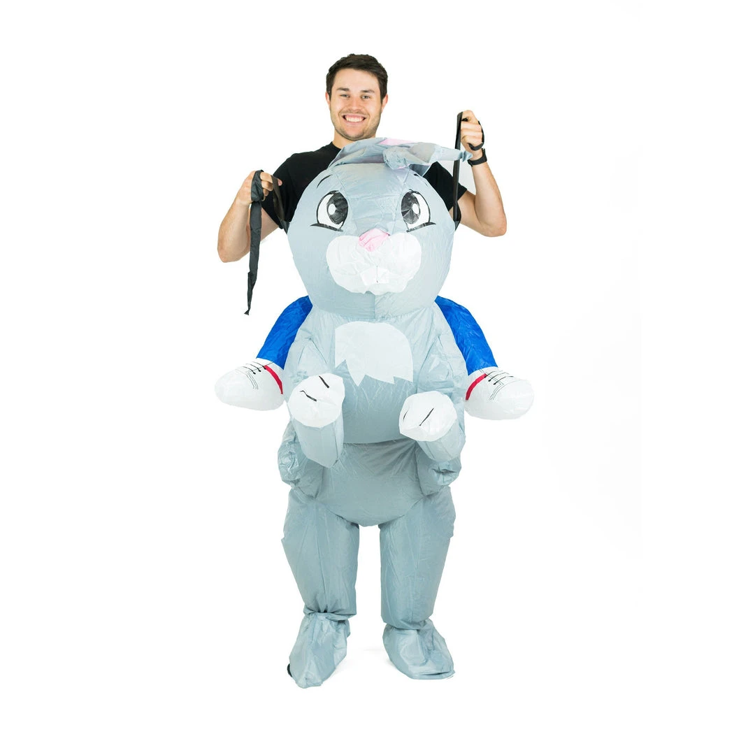 Hop around with our adult inflatable rabbit costume! This funny ride on bunny rabbit fancy dress will make you spring out from the crowd! Suit up with our blow up outfit for children!
