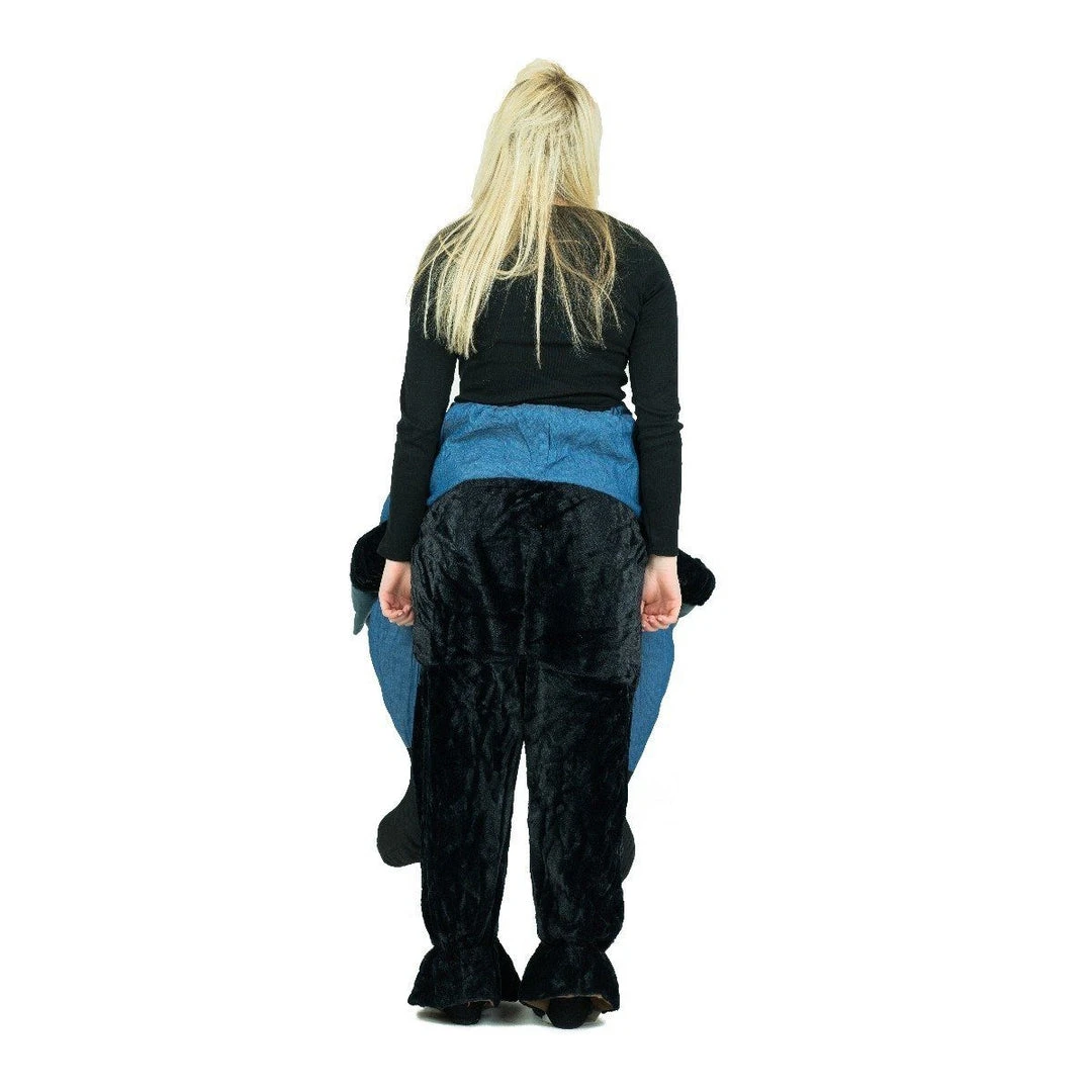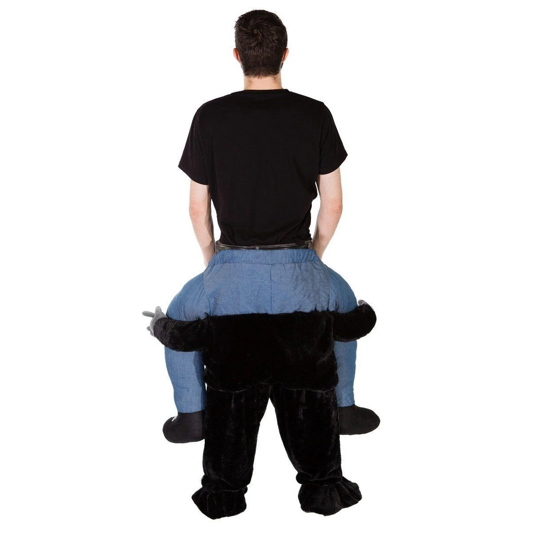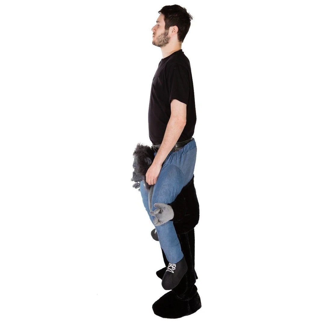 Go ape and ride on our piggyback gorilla costume and create the illusion of being carried around on its shoulders! Our funny piggyback gorilla suit comes with attached and stuffed fake human legs, an elasticated waist and a corded belt so you can adjust it as necessary. If you are like me, you will love to carry on dancing all night long with this fancy dress outfit!