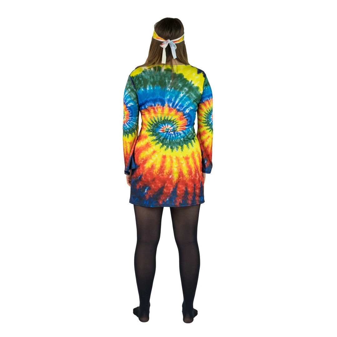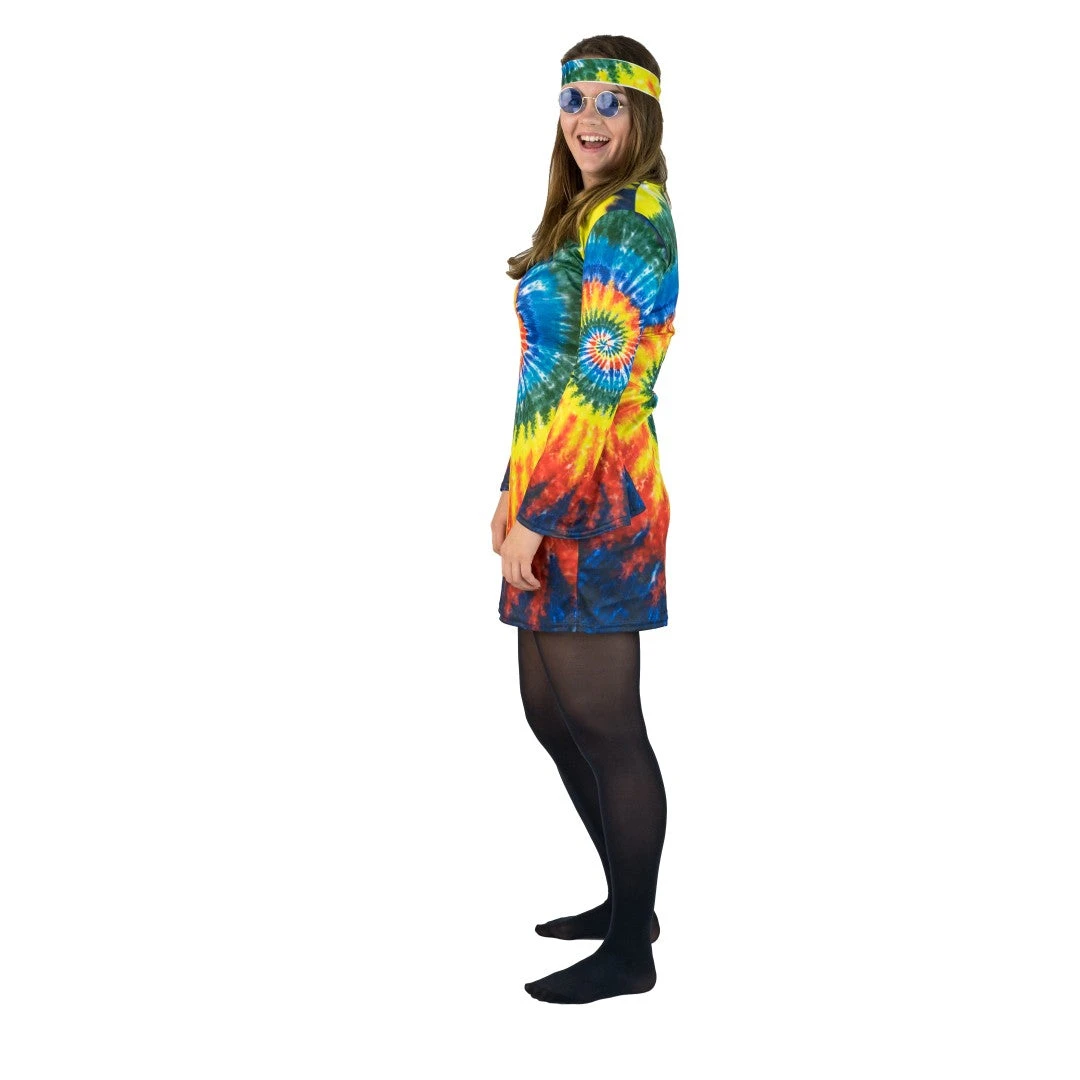 Spread some peace and love by becoming the ultimate groovy chick in our totally rad hippie dress. This retro costume will get heads spinning at any occasion, whether it’s a party, Halloween, Hen do or just for your own amusement!