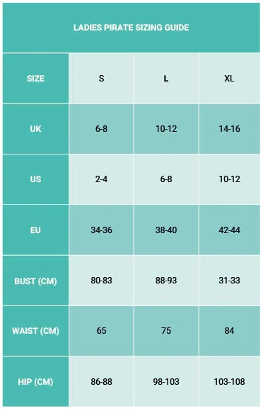 Ahoy there! This pirate costume will ensure that you’ll arrr-ive in style to any occasion, whether it’s a party, Halloween or even a Hen do! This costume features a velvet style corset with red ribbon tie-up and a black underskirt petticoat.